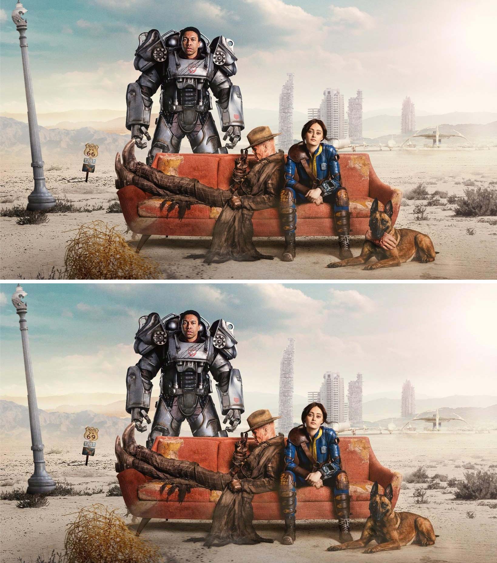 Im folgenden Fehlersuchbild mit „Fallout“-Motiv sind drei Unterschiede versteckt, die es zu identifizieren gilt. Als Lösung muss angegeben werden, an welchen drei Stellen sich die Bilder in welcher Form unterscheiden.